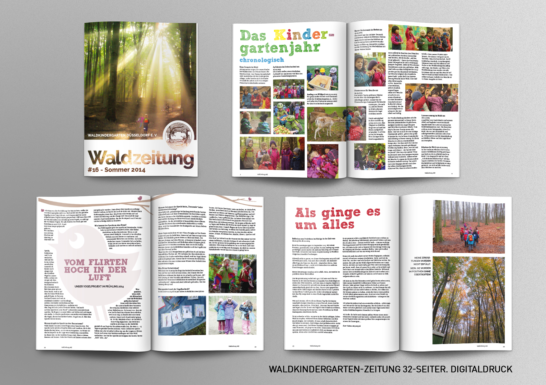 In meiner ehrenamtlichen Tätigkeit als Beisitzerin des Vorstandes des Waldkindergarten Düsseldorf e.V. (zuständig für den Bereich Presse- und Öffentlichkeitsarbeit), habe ich die Waldzeitung, Poster, Flyer und Weihnachtskarten erstellt.